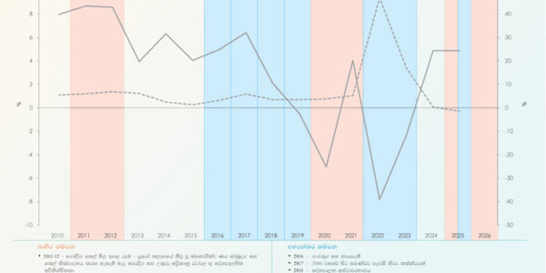 කොළඹ පාරිභෝගික මිල දර්ශකයෙහි (කො.පා.මි.ද., 2021=100)1 වාර්ෂික ලක්ෂ්යමය වෙනස මගින් මනිනු ලබන මතුපිට උද්ධමනය, 2025 පෙබරවාරි මාසයේ වාර්තා වූ -4.2% සිට 2025 මාර්තු මාසයේ දී -2.6% ක් දක්වා ක්රමයෙන් ඉහළ ගොස් ඇති බව ජනලේඛන සහ සංඛ්යාලේඛන දෙපාර්තමේන්තුව පවසයි. වාර්ෂික ලක්ෂ්යමය…