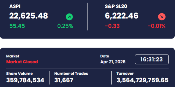 කොළඹ කොටස් වෙළෙඳපොළ තවත් සුවිශේෂී සංධිස්ථානයක් පසුකිරීමට අද (21) දිනයේ දී සමත්විය. එහිදී ඉතිහාසයේ මුල්වරට සියලු කොටස් මිල දර්ශක අගය ඒකක 16,500 ඉක්මවා ගිය අතර S&P SL20 දර්ශකය ද ඒකක 5,000 සීමාව පළමු වරට පසුකරනු ලැබීය. එහිදී දිනය තුළ සියලු කොටස් මිල…