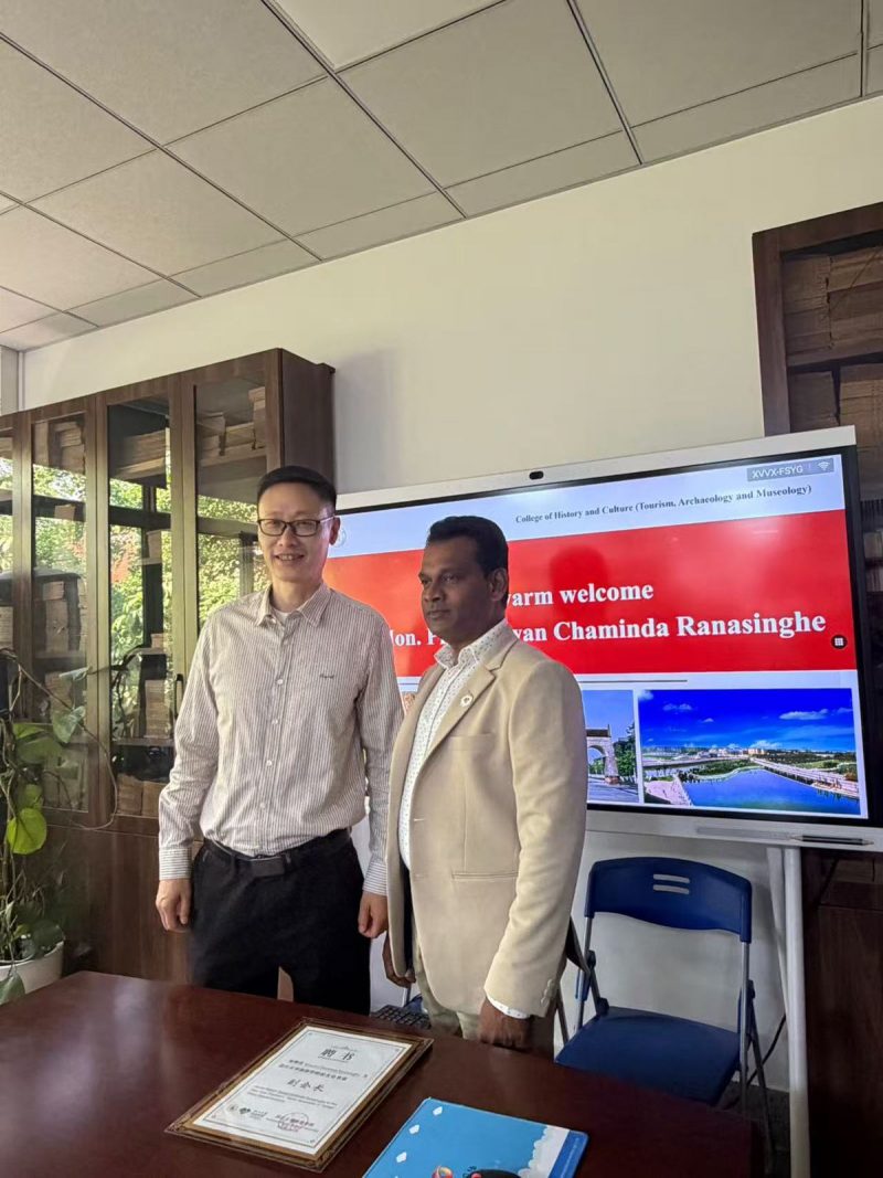 එදින පස්වරුවේ මහාචාර්ය රණසිංහ මහතා විසින් “චීන-ශ්රී ලංකා සංස්කෘතික බැඳීම්: අතීතය, වර්තමානය සහ අනාගතය” යන තේමාව යටතේ ආචාර්ය මණ්ඩලය සහ සිසුන් අමතා දේශනයක් පවත්වන ලදී. සංචාරක සංවර්ධනයේ ප්රධාන ගාමක බලවේගය සංස්කෘතිය බව ඔහු එහිදී අවධාරණය කළේය. ‘එක් තීරයක් – එක් මාවතක්’ වැඩපිළිවෙළ යටතේ ප්රතිපත්තිමය සම්බන්ධීකරණය, යටිතල පහසුකම් සම්බන්ධ කිරීම, ඩිජිටල් සබඳතා සහ අධ්යාපනික හුවමාරු මගින් සංස්කෘතික බැඳීම් තිරසාර සහයෝගීතාවක් දක්වා පරිවර්තනය කළ හැකි බව ඔහු පැහැදිලි කළේය.